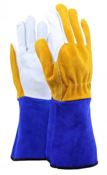 Värmeresistent allroundhandske tillverkad i getskinn av högsta kvalitet, med ovanhand och krage i nötspalt. Ofodrad. Handsken är sydd med stark och värmetålig aramidtråd med dubbla sömmar på utsatta ställen. Extra förstärkningar både i tumgrepp och för hela pekfingret för ökad livslängd. Över handleden sitter en elastisk söm som gör att handsken sitter bättre och säkrare på handen.